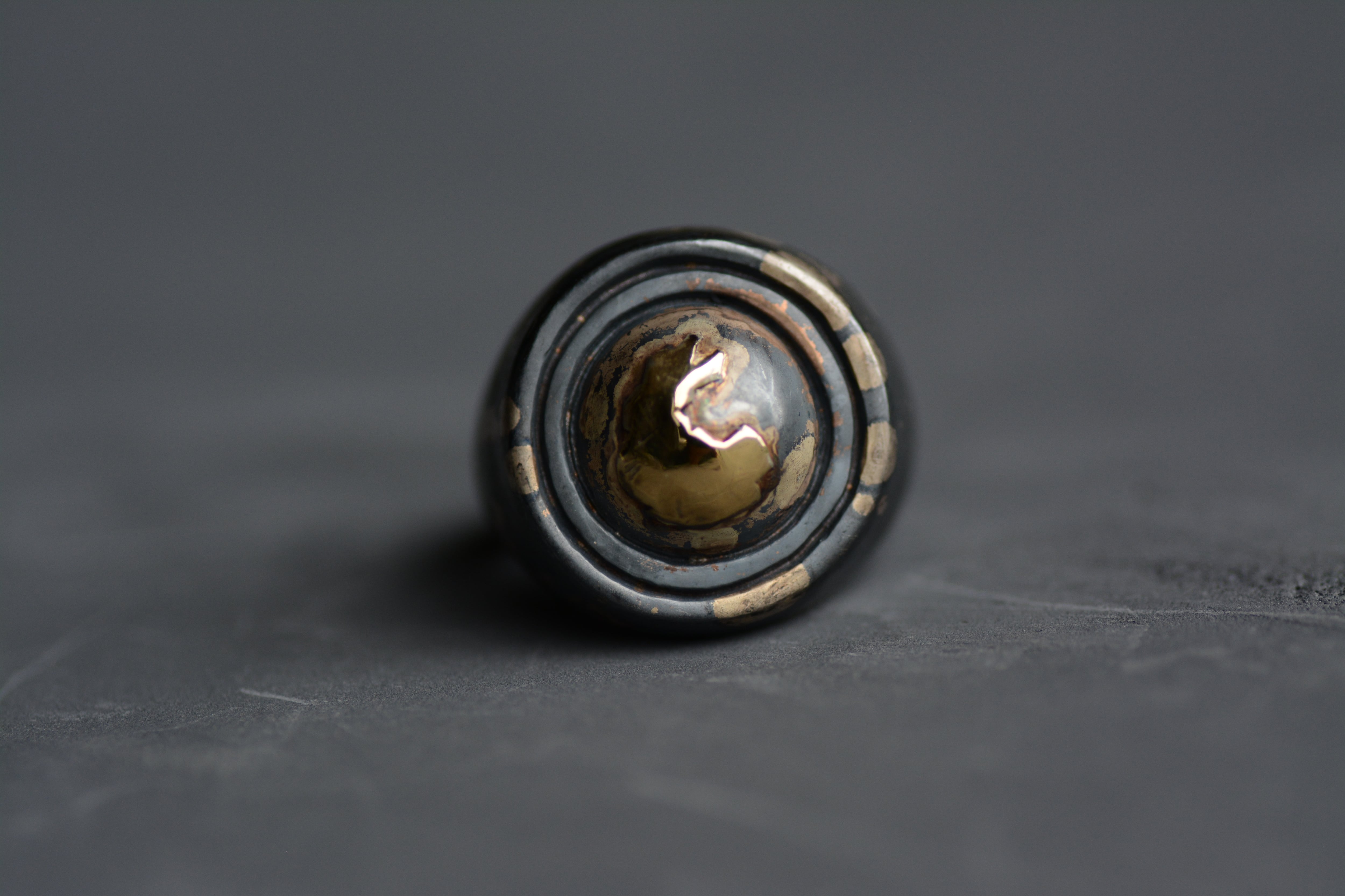 燻加工をして黒く仕上げています。黒い部分が擦れてシルバーが現れてくる部分の経年劣化もお楽しみ下さい。燻直しも承ります。